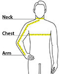 | Chest | 34-36 | 38-40 | 42-44 | 46-48 | 50-52 | 54-56 |