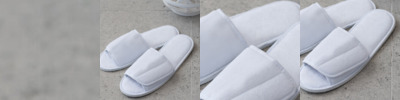 Classic open toed mule slippers, adjustable hook and loop top fastening. Suitable for embroidery or printing. Padded sole.